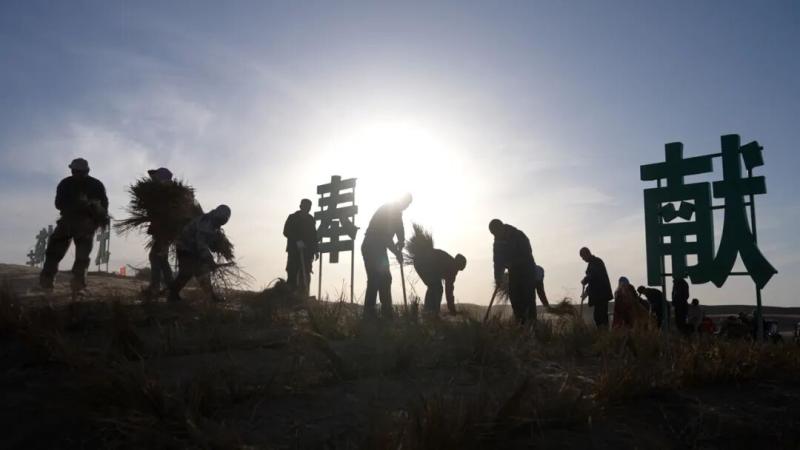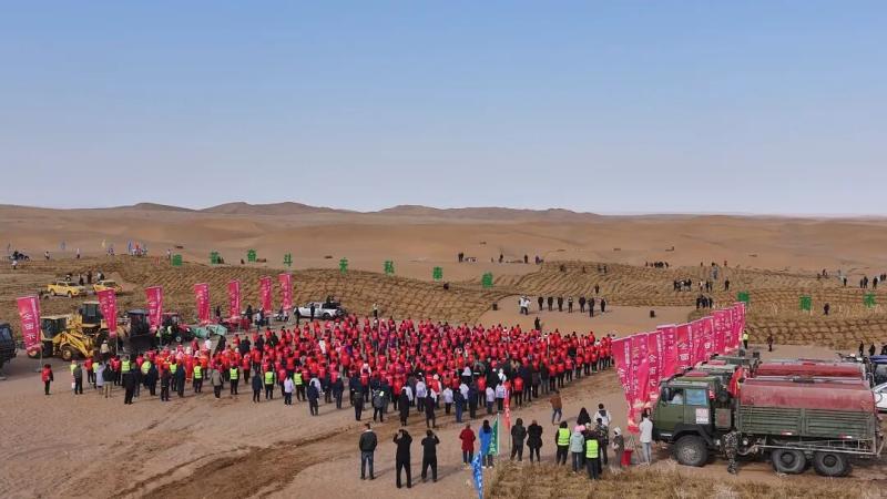 每年春秋兩季,阿拉善盟都會(huì)掀起萬(wàn)人治沙大會(huì)戰(zhàn),機(jī)關(guān)干部、部隊(duì)官兵、企業(yè)員工、學(xué)校師生紛紛走向沙漠,揮鍬植綠。45年來(lái),全盟累計(jì)有數(shù)百萬(wàn)人次參與義務(wù)治沙,社會(huì)力量投入資金超過(guò)6億元,形成了“政府引導(dǎo)、企業(yè)協(xié)同、農(nóng)牧民參與”的多元共治格局。