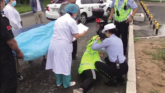 接到求助信息后,市公安局交管支隊(duì)特勤大隊(duì)勤務(wù)中隊(duì)民警邵晶晶與同事一同趕到現(xiàn)場(chǎng),經(jīng)詢(xún)問(wèn),該男子稱(chēng)他在拐彎時(shí)躲避不及前方車(chē)輛摔倒,因車(chē)速過(guò)快,摔倒后腿部無(wú)法挪動(dòng),身上也多處擦傷。由于擔(dān)心搬動(dòng)會(huì)對(duì)男子造成二次傷害,民警撥打了120急救中心電話(huà),在男子身邊設(shè)置了提醒物,并在一旁守護(hù)。