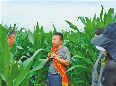 “鄉(xiāng)親們,這就是葉耳,從下往上數(shù)葉耳達到八九片就到了玉米的拔節(jié)期,此時就該追肥了……”包頭市農(nóng)牧科學(xué)技術(shù)研究所糧食中心的專家其日格站在田埂上對村民提出的問題逐一講解。