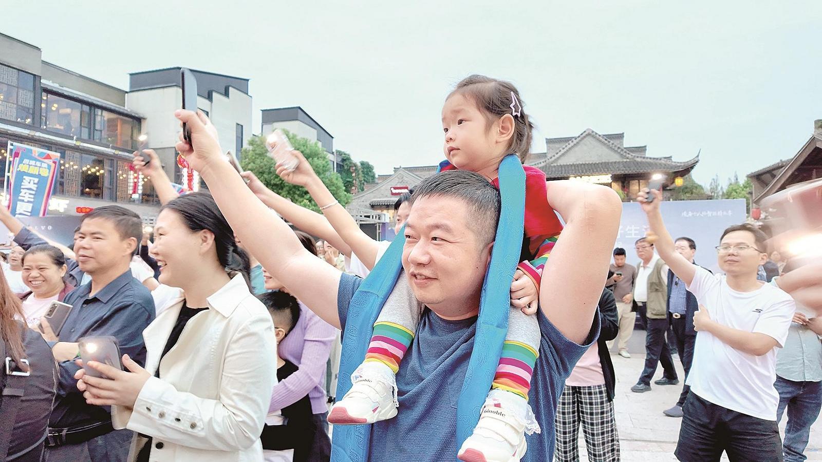 演出在歡快熱烈的舞蹈《馬背交響》中拉開序幕。隨后,《烏蘭牧騎心向黨》《萬馬奔騰》《天下黃河九十九道彎》等十余個節(jié)目輪番上演,嘹亮的歌聲、奔放的舞姿,生動展現(xiàn)出草原兒女的熱情與豪邁。演出過程中,演員們走下舞臺,與現(xiàn)場觀眾親切互動,用音樂和舞蹈拉近了草原風(fēng)情與廬韻皖風(fēng)的距離。觀眾打開手機閃光燈隨節(jié)奏搖擺,化作一片星光;小朋友們歡快地模仿著騎馬動作,現(xiàn)場氣氛熱烈。除演出外,活動還同步展出剪紙、羊脂皂等多項包頭非遺代表性項目,讓市民游客在欣賞表演的同時,近距離體驗非遺技藝的魅力。
