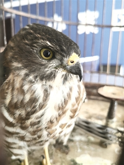 8月19日早上,民警于將雀鷹送往大青山野生動(dòng)物救護(hù)中心,中心工作人員將對(duì)其進(jìn)行觀察和喂養(yǎng),待其體能恢復(fù)后放歸自然?!?記者 郝儒冰)攝影/賈德京