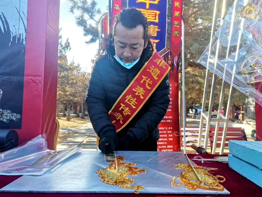 活動(dòng)現(xiàn)場(chǎng),非遺剪紙傳承人董存娥專門剪出“奧運(yùn)題材剪紙”和“北京冬奧會(huì)開幕式中國代表團(tuán)旗手、呼和浩特19歲姑娘趙丹”手舉國旗的剪紙作品。呼和浩特的非遺項(xiàng)目布藝、剪紙、蒙古族皮藝皮畫皮雕、糖畫、蛋雕、蒙鑲工藝、二人臺(tái)、爬山調(diào)等近20項(xiàng)進(jìn)行了現(xiàn)場(chǎng)展示展覽傳習(xí)互動(dòng),受到群眾歡迎。