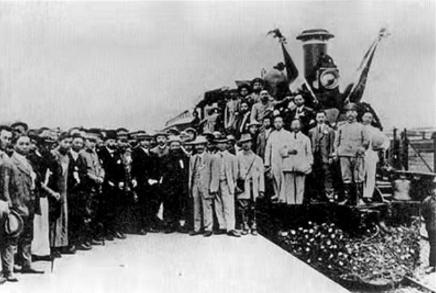 1912年9月6日,孫中山視察詹天佑修建京張鐵路時,在張家口車站月臺上合影。(資料圖)1907年鋪設(shè)的老鐵軌。