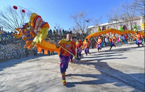 舞龍 1月13日,演員們在呼和浩特市回民區(qū)莫尼山非遺小鎮(zhèn)表演......