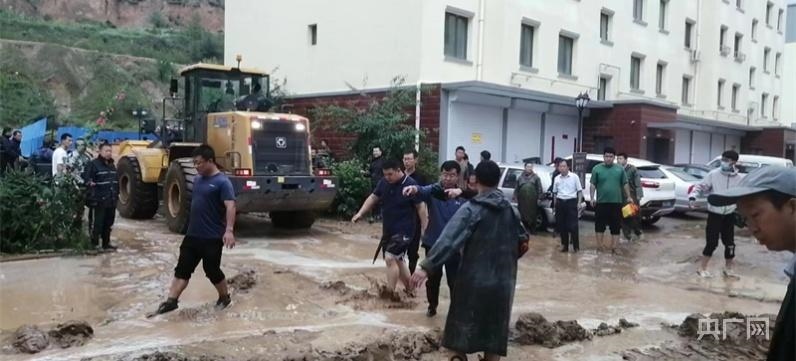 清水河縣組織部機(jī)關(guān)黨員干部在清水河縣河畔花園小區(qū)東區(qū)參加防汛抗洪(央廣網(wǎng)發(fā)潘磊攝)