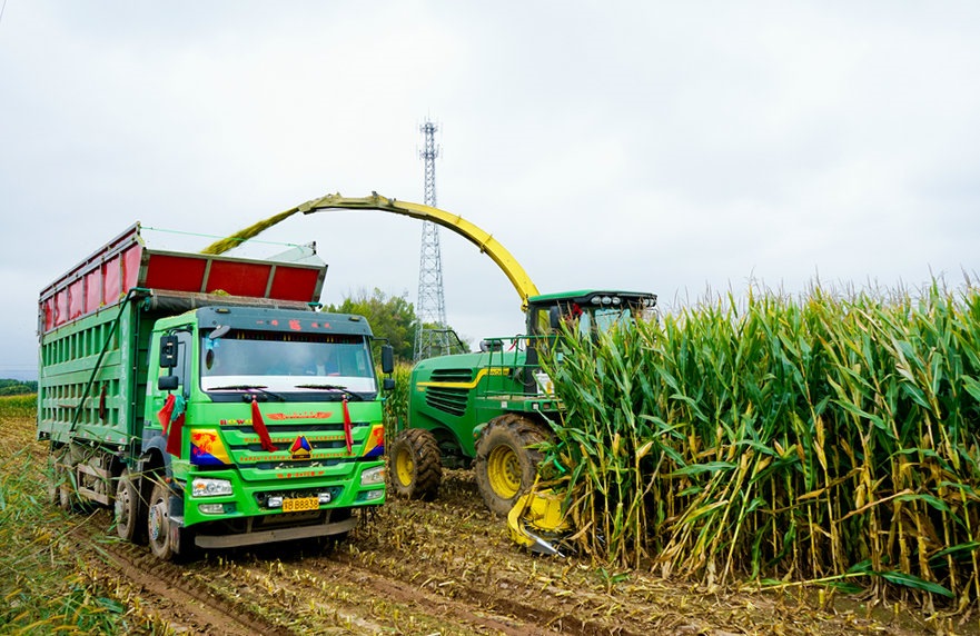 青貯玉米是把玉米植株全部收割下來經過切碎、加工后用發(fā)酵的方法制作成青貯飼料的玉米,用來飼喂牛、羊等牲畜。這幾天,土默特左旗青貯玉米陸續(xù)進入豐收季,收割工作全面啟動。