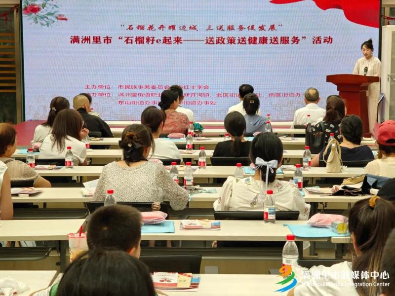 日前,“石榴花開耀邊城 三送服務(wù)促發(fā)展”——滿洲里市“石榴籽e起來”送健康活動在滿洲里市怡園社區(qū)舉行。全市各街道辦事處、新開河鎮(zhèn)的100余名各族群眾參加活動。