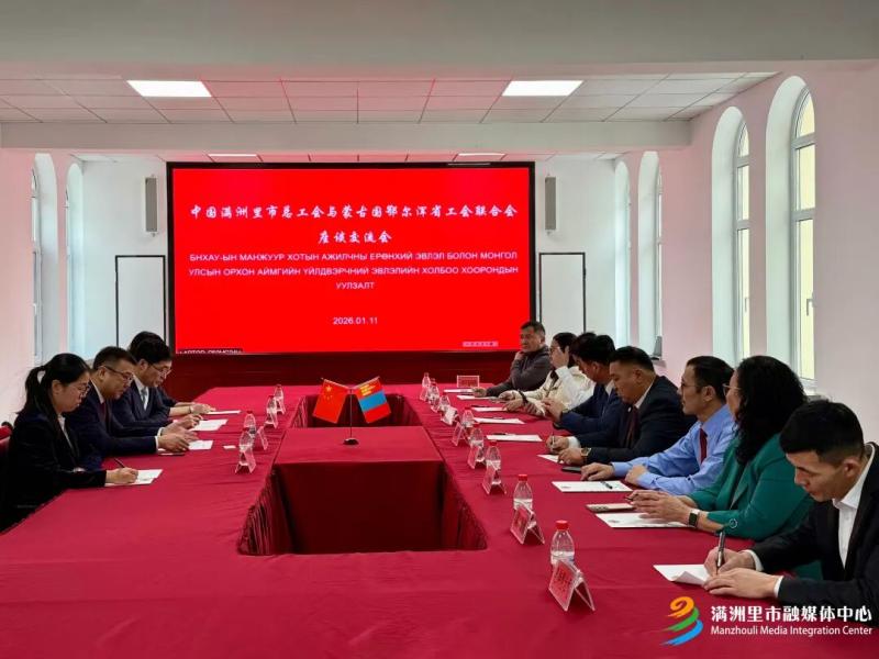 1月11日,滿洲里市總工會與蒙古國鄂爾渾省工會聯(lián)合會座談交流會舉行。雙方圍繞工會工作經(jīng)驗互鑒、跨境職工服務(wù)合作等議題深入交流,共話友誼、共謀發(fā)展。