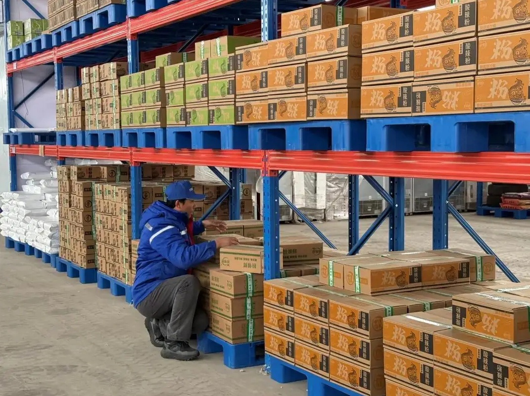 這座占地3000平方米的現(xiàn)代化物流樞紐功能齊全:保鮮冷藏區(qū)保障牛羊肉和乳制品的新鮮口感;常溫倉(cāng)儲(chǔ)區(qū)整齊碼放著大米、沙果干等特產(chǎn);打包區(qū)里工人配合膜包機(jī)完成高效分裝。更重要的是,政府持續(xù)給予租金補(bǔ)貼,大大減輕了企業(yè)的倉(cāng)儲(chǔ)負(fù)擔(dān)。