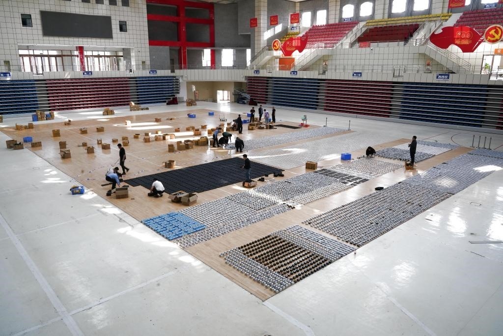 民警在黑龍江省饒河縣一體育館內(nèi)清點繳獲的竊聽竊照器材。(饒河縣公安局供圖)