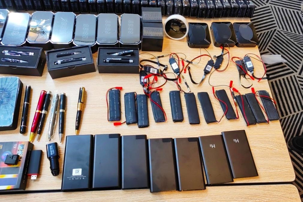 為及時斬斷犯罪鏈條,饒河縣公安局成立專案組,全力攻堅此案。經(jīng)過深入研判分析,專案組鎖定了嫌疑人王某、龔某、陳某身份。在抓獲現(xiàn)場,警方發(fā)現(xiàn)偽裝成充電寶、打火機、插座、燈泡等物品的各類竊聽竊照專用器材,種類之多、數(shù)量之大,讓在場民警大為震驚。