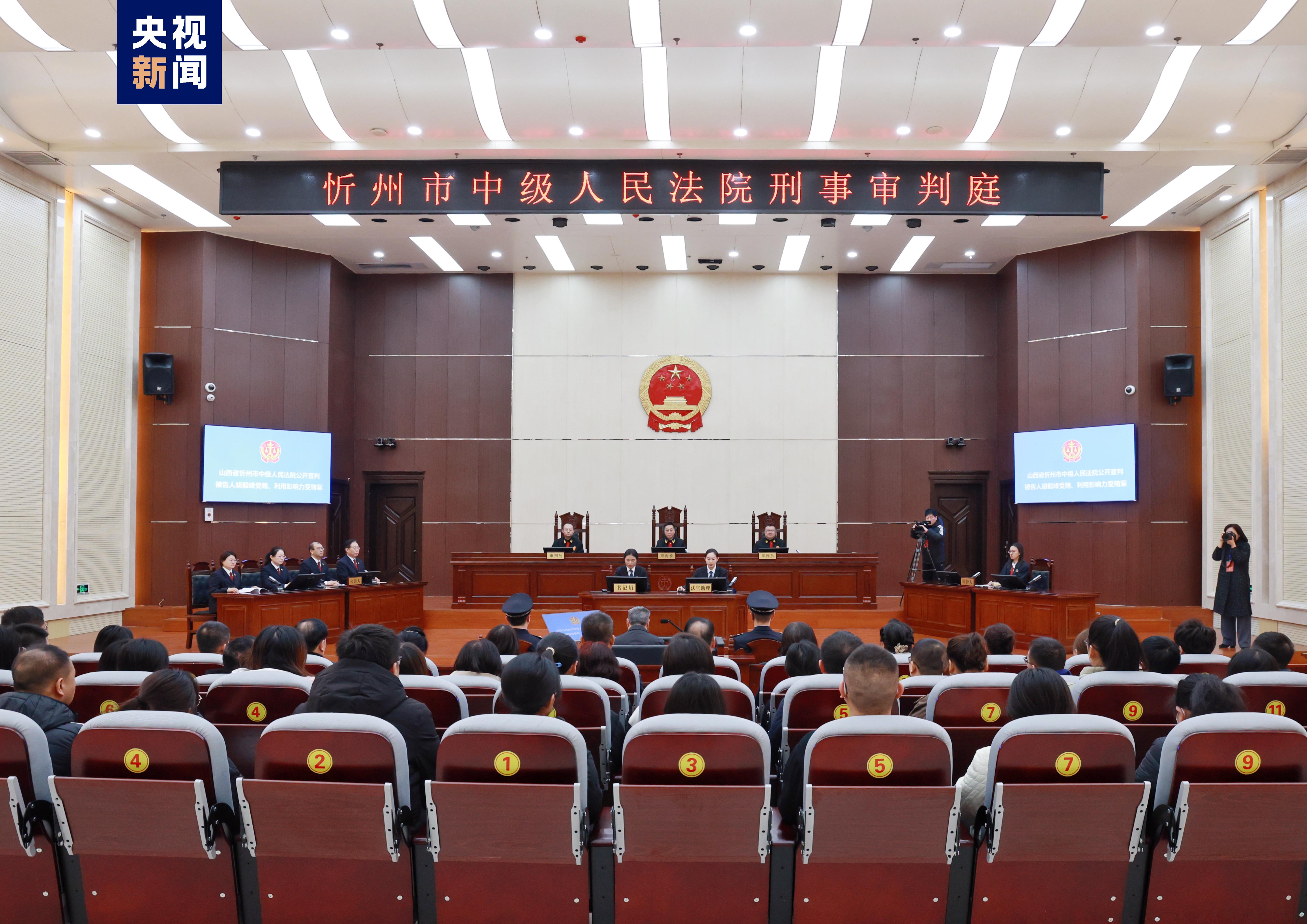 2024年1月9日,山西省忻州市中級人民法院一審公開宣判內蒙古自治區(qū)高級人民法院原黨組書記、院長胡毅峰受賄、利用影響力受賄一案,對被告人胡毅峰以受賄罪判處有期徒刑十三年,并處罰金人民幣三百萬元,以利用影響力受賄罪判處有期徒刑三年,并處罰金人民幣二十萬元,決定執(zhí)行有期徒刑十四年,并處罰金人民幣三百二十萬元;對查扣在案的胡毅峰犯罪所得財物及其孳息,依法予以追繳,上繳國庫。