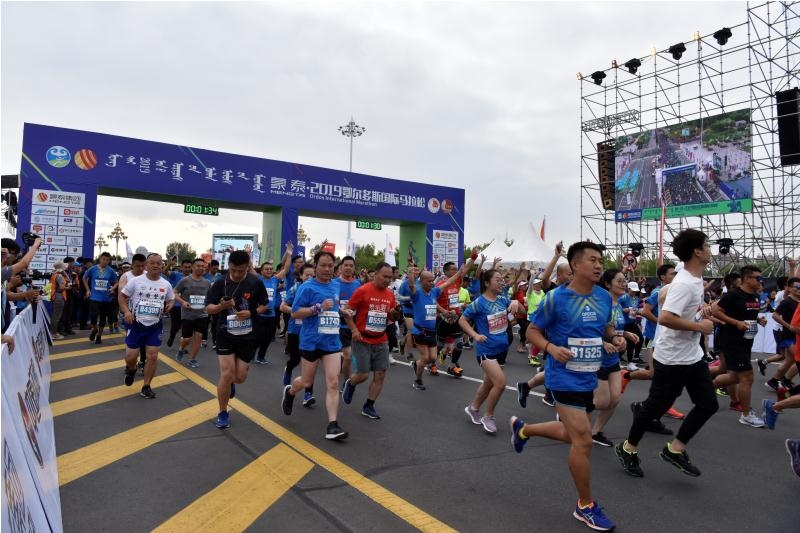 8月24日傍晚,蒙泰·2019鄂爾多斯國(guó)際馬拉松在鄂爾多斯市康巴什區(qū)烏蘭木倫湖廣場(chǎng)鳴槍開跑。