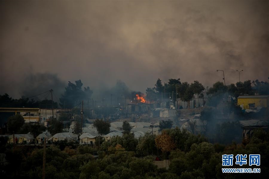 9月9日,希臘萊斯沃斯島的莫里亞難民營發(fā)生火災。新華社發(fā)(帕納吉奧提斯·帕拉斯卡斯攝)