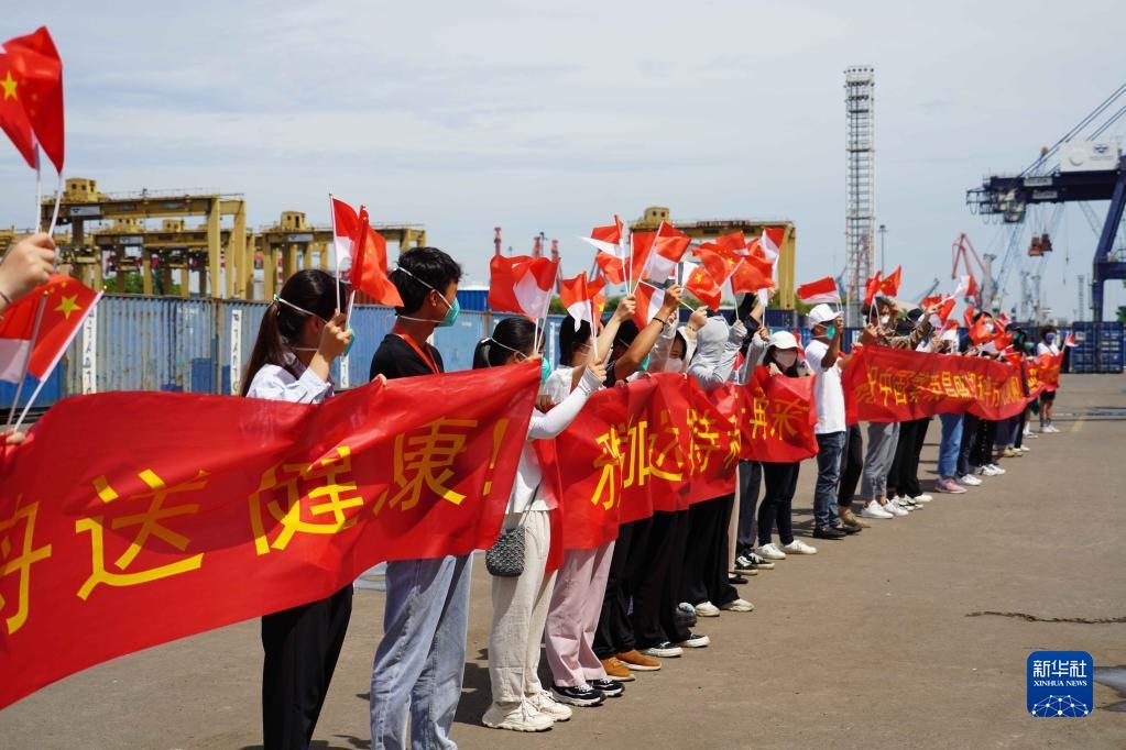 當(dāng)日,印尼海軍和當(dāng)?shù)孛癖?,以及中?guó)駐印尼使館工作人員和中資機(jī)構(gòu)、華僑華人代表等在碼頭送行。離開碼頭后,“和平方舟”號(hào)醫(yī)院船還與印尼海軍“三寶壟”號(hào)醫(yī)院船進(jìn)行了聯(lián)合通信、燈光旗語(yǔ)、編隊(duì)航行等課目演練。