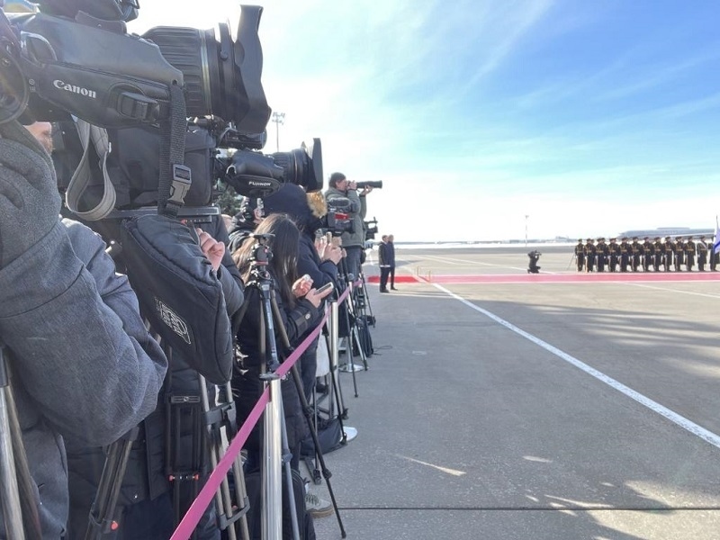 抵達時,俄方在機場舉行隆重迎賓儀式。