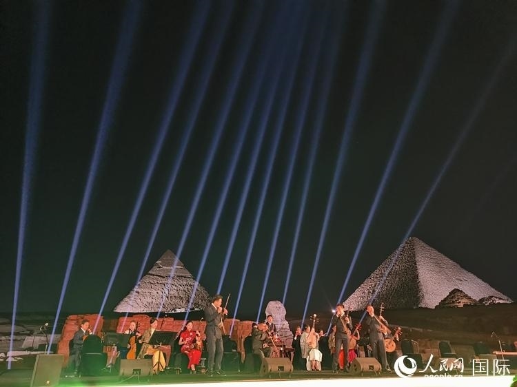 中埃兩國同為世界文明古國,人文領(lǐng)域合作空間大、潛力足。夜幕下的吉薩三大金字塔在燈光映襯下巍峨聳立,現(xiàn)場橫幅展示出“讓中埃友誼如尼羅河水奔涌向前”字樣,兩大古老文明此刻在金字塔上空相遇。音樂會的成功舉辦將成為中埃兩國文化合作新起點。
