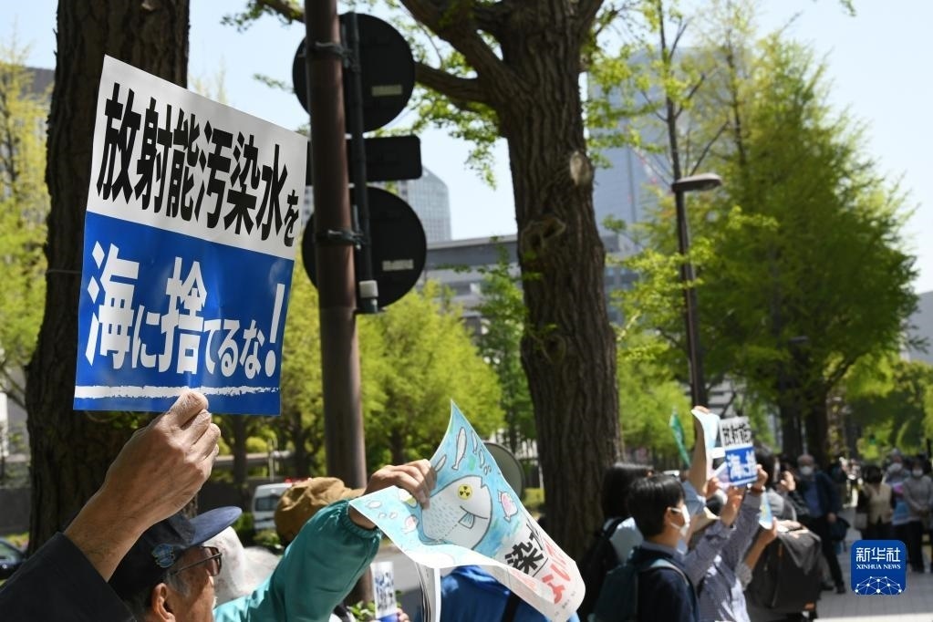 新華社東京4月13日電特寫:“核污染水的處理不能由日本政府擅作主張”——日本民眾集會(huì)抗議核污染水排海計(jì)劃