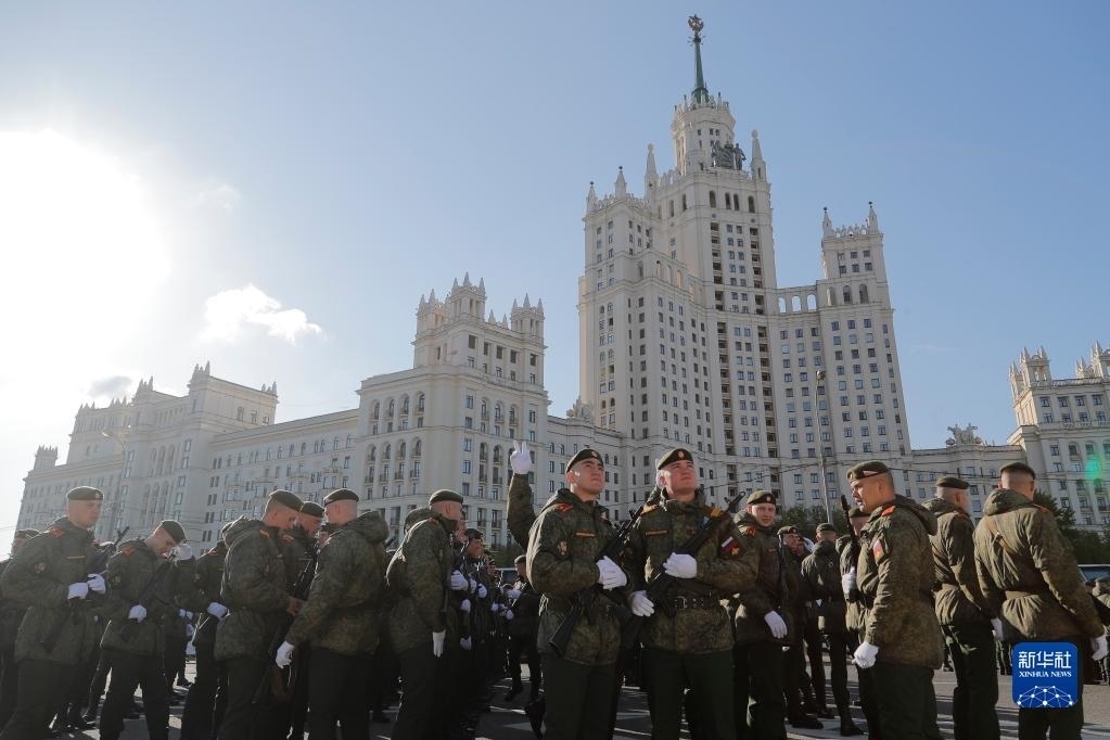 當(dāng)日,莫斯科舉行衛(wèi)國戰(zhàn)爭勝利日閱兵式彩排。