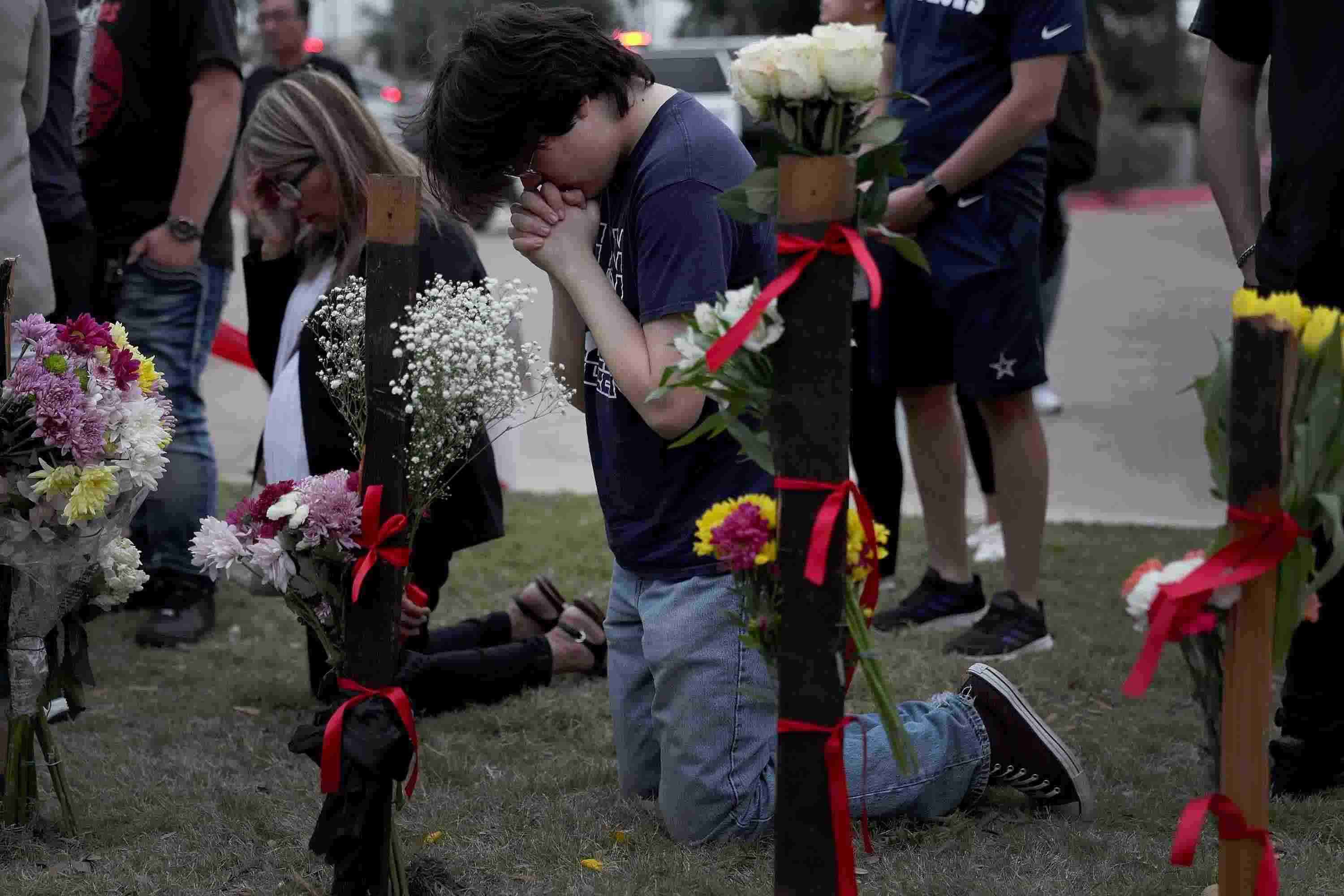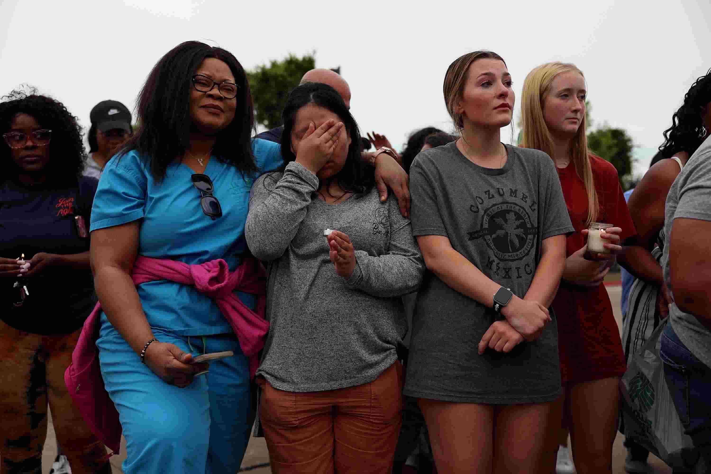 當(dāng)?shù)貢r(shí)間2023年5月7日,美國(guó)得克薩斯州艾倫市,民眾參加守夜活動(dòng)哀悼槍擊事件遇難者。美國(guó)得克薩斯州一家購(gòu)物中心6日發(fā)生槍擊事件,造成包括槍手在內(nèi)的9人死亡、7人受傷。 視覺(jué)中國(guó)