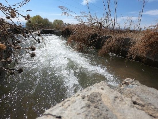 這是吉爾吉斯斯坦卡拉奧伊村經(jīng)中國援建灌溉工程改造后的水渠。