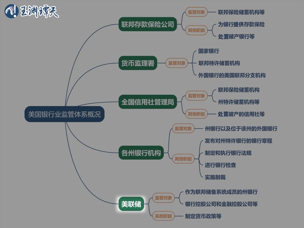 讓我們重新看回這張圖,可以看到,按照美國銀行業(yè)監(jiān)管體系的分工,美聯(lián)儲負(fù)責(zé)監(jiān)管所有成員銀行的正常運(yùn)行。