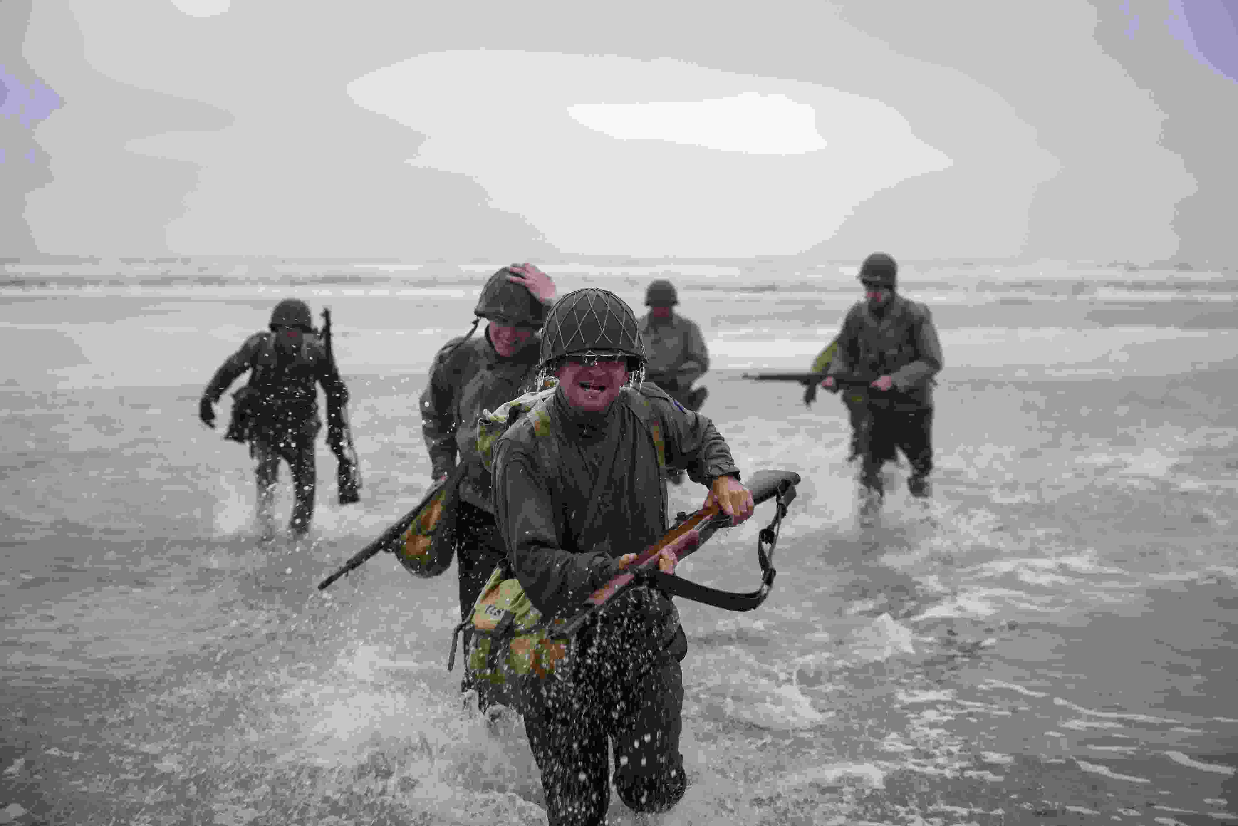 當(dāng)?shù)貢r間2023年6月6日,法國奧馬哈海灘,人們重現(xiàn)戰(zhàn)爭場景紀(jì)念諾曼底登陸。1944年6月6日黎明時分,近16萬盟軍在諾曼底登陸。 視覺中國