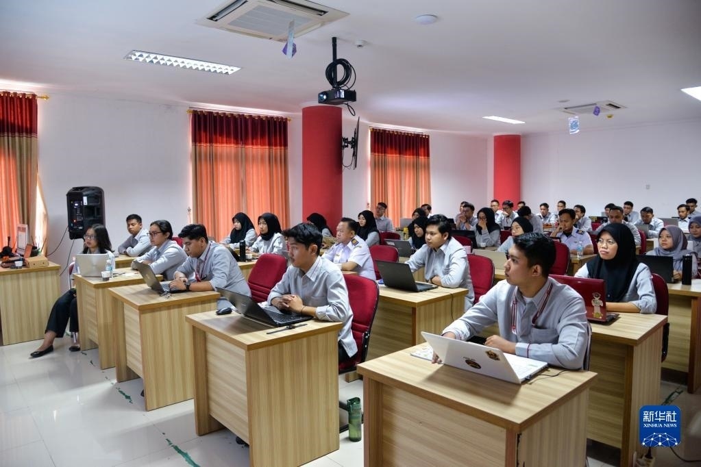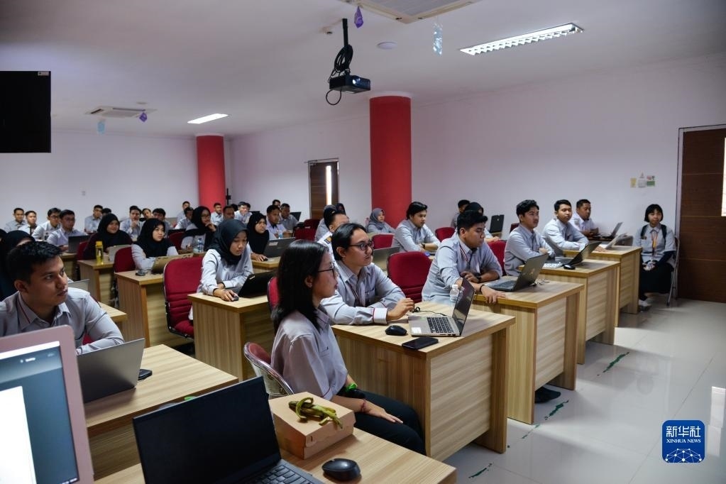 6月7日,在位于印度尼西亞茉莉芬市的印尼鐵路理工學院,學員在接受雅萬高鐵運行控制中心調(diào)度人員培訓。