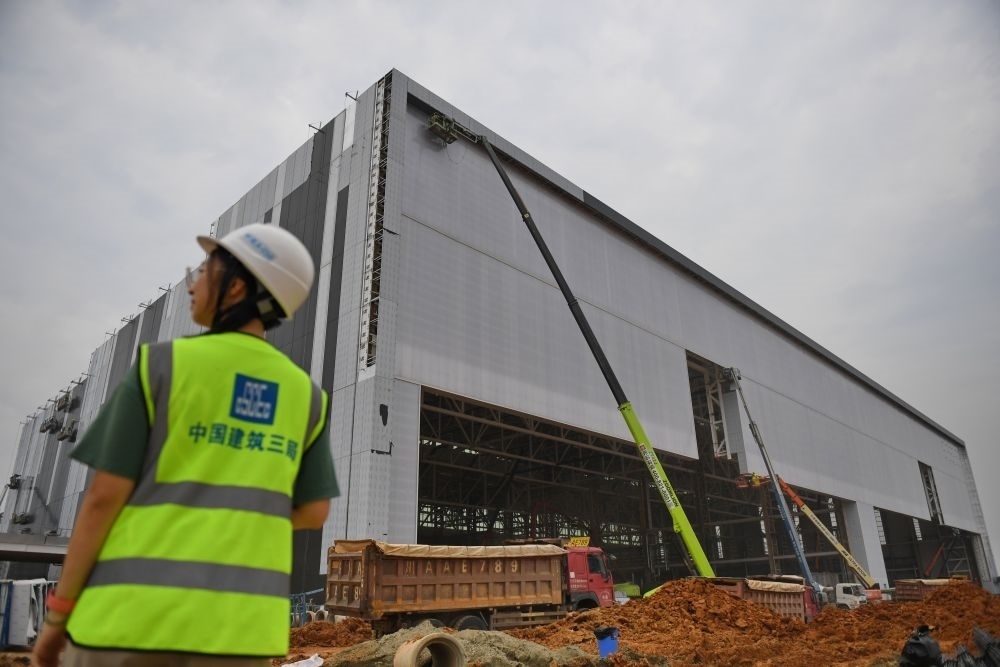 2023年8月15日,在位于四川省成都市雙流區(qū)的空中客車(成都)飛機(jī)全生命周期服務(wù)有限公司項(xiàng)目建設(shè)現(xiàn)場,工人在作業(yè)。新華社發(fā)(李向雨 攝)