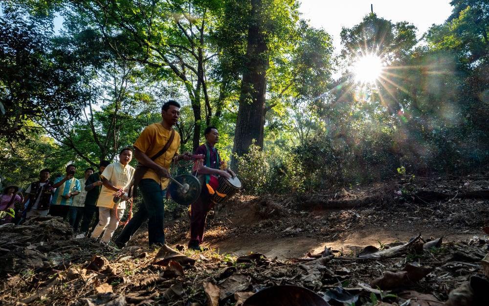 3月25日,景邁山茶農(nóng)前往古茶林準(zhǔn)備舉行祭拜儀式。新華社記者 江文耀 攝