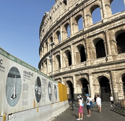 在意大利羅馬熱門景點(diǎn)斗獸場,游客正在閱讀帶有中文解說的標(biāo)識牌。本報(bào)記者 謝亞宏攝