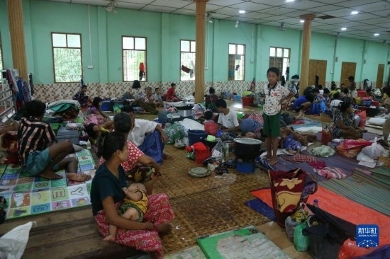 8月12日,人們在緬甸勃固省一處洪災(zāi)安置點休息。新華社發(fā)(苗覺梭攝)