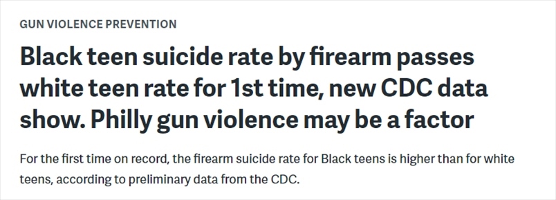 約翰斯·霍普金斯大學(xué)(Johns Hopkins University)最近的研究分析使用了2022年的初步統(tǒng)計(jì)數(shù)據(jù)進(jìn)行計(jì)算,結(jié)果顯示,2022年全美總體槍支自殺率升至歷史最高水平。研究人員還發(fā)現(xiàn),黑人青少年的槍支自殺率首次超過(guò)了白人青少年。