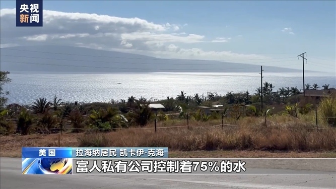 央視記者 劉旭:整個毛伊島都是異常干燥炎熱的天氣,所以在我旁邊也是連片枯草的景象。整個毛伊島西部地區(qū),包括拉海納地區(qū),淡水資源非常緊缺。當(dāng)?shù)匾恍┚用竦纳钣盟窃趺磥淼哪??是在遠處山上地勢較高的地區(qū),有一些儲水設(shè)施或者蓄水池,把一些天然的降水和高山融水儲存起來,另外再通過地表徑流流經(jīng)到生活的不同區(qū)域,很多當(dāng)?shù)孛癖姇惭b這樣的水閥、水表把水引到自己的家中。在8月8日拉海納大火發(fā)生之后,當(dāng)?shù)氐乃Y源使用權(quán)利也出現(xiàn)很多爭議。