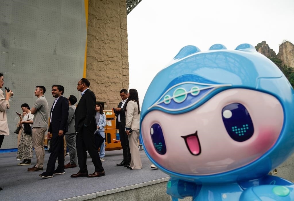8月29日,駐華使節(jié)在紹興柯橋羊山攀巖中心參觀。新華社記者 韓傳號(hào) 攝
