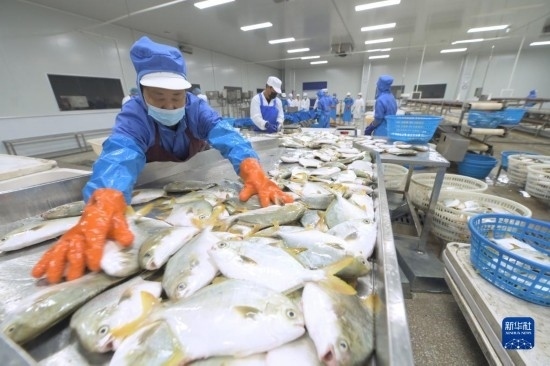 10月17日,位于中印尼“兩國(guó)雙園”的福建淼天匯食品有限公司員工在挑選準(zhǔn)備出口到印尼的魚產(chǎn)品。