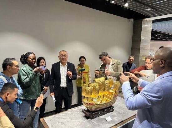 新華網(wǎng)北京10月23日電(記者王艷剛)10月20日至21日,首屆國際傳播“絲路獎”獲獎嘉賓在北京近距離體驗(yàn)中國傳統(tǒng)工藝景泰藍(lán)和中國書法。