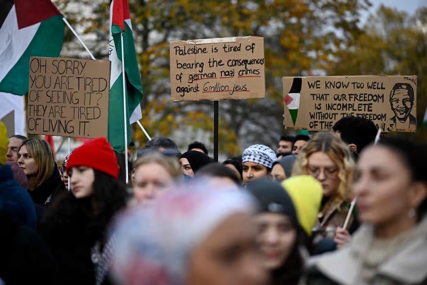 當(dāng)?shù)貢r(shí)間11日,民眾在德國(guó)柏林參加支持巴勒斯坦游行 圖源:《衛(wèi)報(bào)》