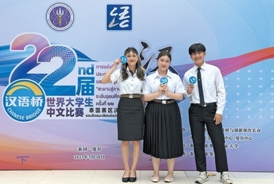 語(yǔ)言是了解一個(gè)國(guó)家最好的鑰匙。當(dāng)前,越來越多的外國(guó)人通過學(xué)習(xí)中文和參加“漢語(yǔ)橋”交流項(xiàng)目,了解到豐富多彩、立體全面的中國(guó)。圖為今年7月,部分參加第二十二屆“漢語(yǔ)橋”世界大學(xué)生中文比賽泰國(guó)賽區(qū)決賽的比賽選手在現(xiàn)場(chǎng)合影留念。