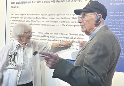 走進(jìn)博物館,代表團(tuán)成員在一張張老照片、一件件珍貴實(shí)物前流連,認(rèn)真聆聽講解,還不時(shí)與身邊親友交談。麥克馬倫在展板上看到自己的名字后,興奮地向妻子珍妮弗指了指名字的位置。他曾擔(dān)任B—24轟炸機(jī)機(jī)頭炮手和助理飛行機(jī)械師,在昆明和成都參加對(duì)日作戰(zhàn)。看著玻璃柜里的展品,他感慨:“美中兩國(guó)人民的友誼將延綿不斷?!?/p>