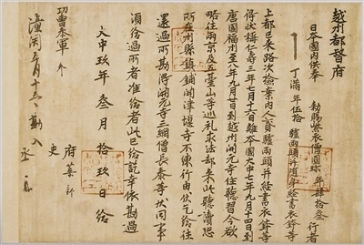 圓珍返回日本后,始終保持著與唐朝高僧、學(xué)者的交流。他在年近古稀時(shí)仍一心鉆研佛法,并修書向大唐僧人尋求關(guān)于佛法的權(quán)威解釋。在被稱為《圓珍疑問》的書信中,他摘引多部佛法經(jīng)典并列舉疑問,文中出現(xiàn)“乞垂委示”“其義如何”“唐言如何”等請求回答的表述。書信于882年寄往長安友人處,現(xiàn)存版本是圓珍抄錄的副本。