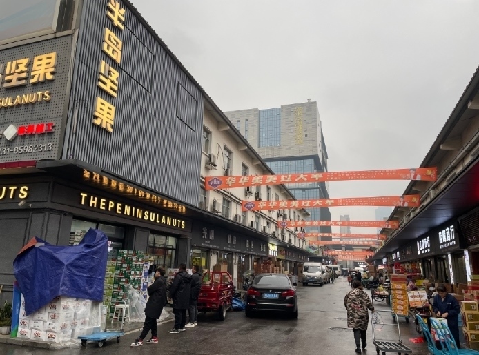 這是湖南長沙高橋大市場堅果經(jīng)銷商李海麗在整理貨物。新華社記者 余春生 攝