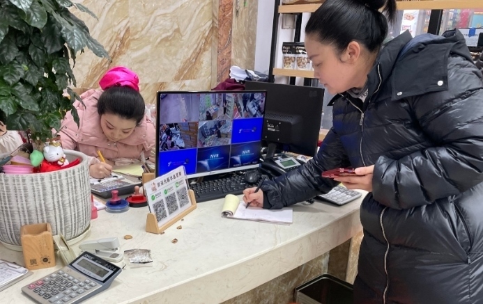 這是湖南長沙高橋大市場堅果經(jīng)銷商李海麗(右一)在聯(lián)系物流。新華社記者 余春生 攝