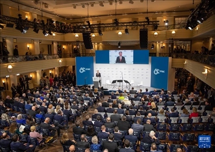 2月16日,在德國慕尼黑,慕安會(huì)主席克里斯托夫·霍伊斯根在第60屆慕尼黑安全會(huì)議(慕安會(huì))開幕式上致辭。新華社記者張帆攝