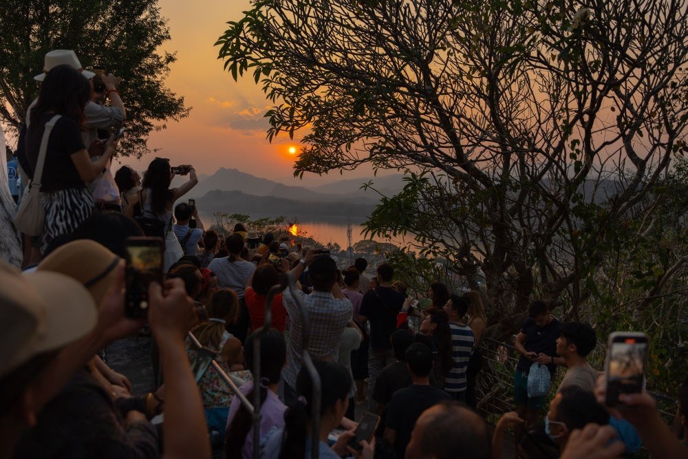2月16日,在老撾瑯勃拉邦普西山山頂,游客在觀賞落日景觀。湄公河畔、老撾北部群山環(huán)繞的瑯勃拉邦在14到16世紀間曾是老撾歷史上第一個統(tǒng)一的多民族國家瀾滄王國的首都。瑯勃拉邦古城1995年被聯(lián)合國教科文組織列入世界文化遺產(chǎn),如今已經(jīng)成為老撾歷史與文化的象征。