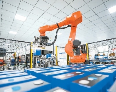 在江西省撫州市南豐縣,智能化生產(chǎn)車(chē)間正在裝配儲(chǔ)能電池。謝 東攝(人民視覺(jué))
