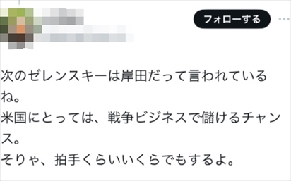 還有人說(shuō)道:“有人說(shuō)下一個(gè)澤連斯基是岸田。對(duì)美國(guó)來(lái)說(shuō),戰(zhàn)爭(zhēng)是賺錢的時(shí)機(jī),掌聲還是會(huì)給你的。”