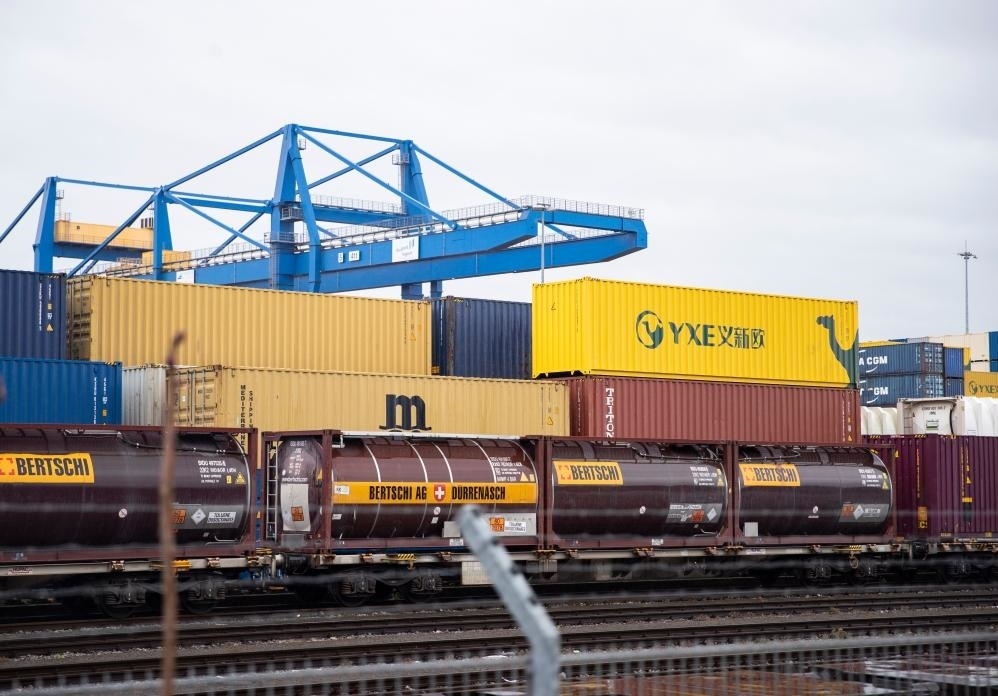 這是3月28日在德國杜伊斯堡拍攝的一處貨運(yùn)場(chǎng)站。