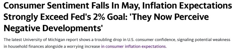 美國密歇根大學(xué)日前公布的數(shù)據(jù)顯示,由于通脹預(yù)期惡化,一項(xiàng)關(guān)鍵美國消費(fèi)者信心指數(shù),跌至2023年11月以來的最低水平。