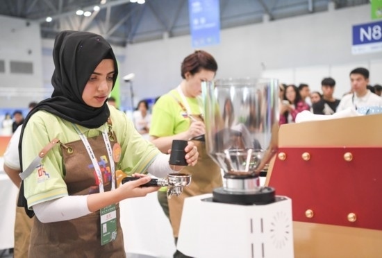 6月24日,第二屆“一帶一路”國際技能大賽咖啡制作項目選手在比賽中。新華社記者王全超 攝